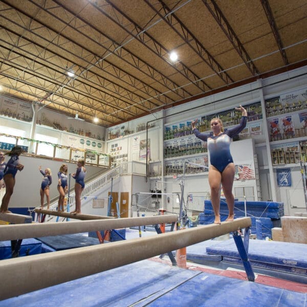 Elizabeth Denny was on the balance beam at the World Class Gateway Challenge Meet in Collinsville. Her routine started with a pair of back handsprings on the four-inch-wide beam in front of more than 800 gymnasts from around the nation. Split jumps, tuck jumps, full turns. It was a routine she knew well.